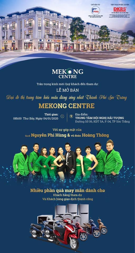 Đến tham dự Lễ mở bán Đại đô thị trung tâm kiểu mẫu đáng sống nhất TP Sóc Trăng Mekong Centre, khách hàng không chỉ có cơ hội sở hữu được những sản phẩm có vị trí đẹp nhất giai đoạn này mà còn được đắm mình vào một không gian âm nhạc hoành tráng với các tên tuổi nổi tiếng hiện nay như ca sĩ Nguyễn Phi Hùng, vũ đoàn Hoàng Thông cùng sự dẫn dắt linh hoạt và chuyên nghiệp của MC Phương Thảo. Không những vậy, trong lễ mở bán tới khách hàng còn có cơ hội trở thành chủ nhân của các giải thưởng như xe Honda Lead, xe Honda Vision, xe Honda Wave Alpha, Tủ lạnh cùng nhiều phần quà hấp dẫn.