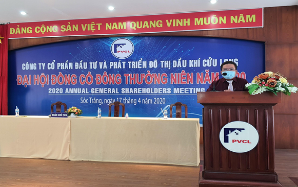 Vào lúc 08h20 ngày 17/04/2020, Công ty Cổ phần Đầu tư và Phát triển Đô thị Dầu khí Cửu Long đã tiến hành tổ chức Đại hội đồng cổ đông thường niên năm 2020 tại Hội trường Công ty – số 02, KTM 06, Đường số 6, Khu Đô thị 5A, phường 4, thành phố Sóc Trăng, tỉnh Sóc Trăng, theo đúng lịch trình đã thông báo với Sở Giao dịch Chứng khoán TP.HCM và được xác nhận theo thông báo số 187/TB – SGDHCM ký ngày 20/02/2020.