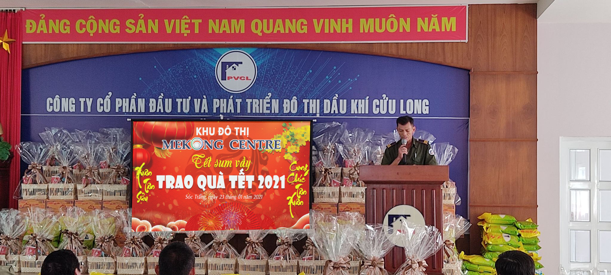 Nhằm chăm lo đời sống cho cán bộ, nhân viên và người lao động trong Công ty nhân dịp tết nguyên đán Tân Sửu năm 2021. Ban Lãnh đạo công ty và Ban chấp hành công đoàn Công ty Cổ phần Đầu tư và Phát triển Đô thị Dầu khí Cửu Long đã tổ chức buổi trao tặng quà “ Tết sum vầy” cho toàn thể nhân viên vào sáng ngày 23/01/2021.