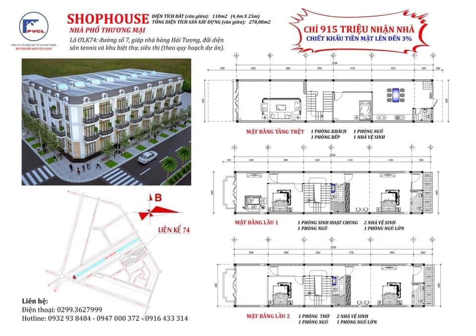 SHOPHOUSE - Nhà phố thương mại 1 trệt 2 lầu ƠLK74 hướng Đông Nam